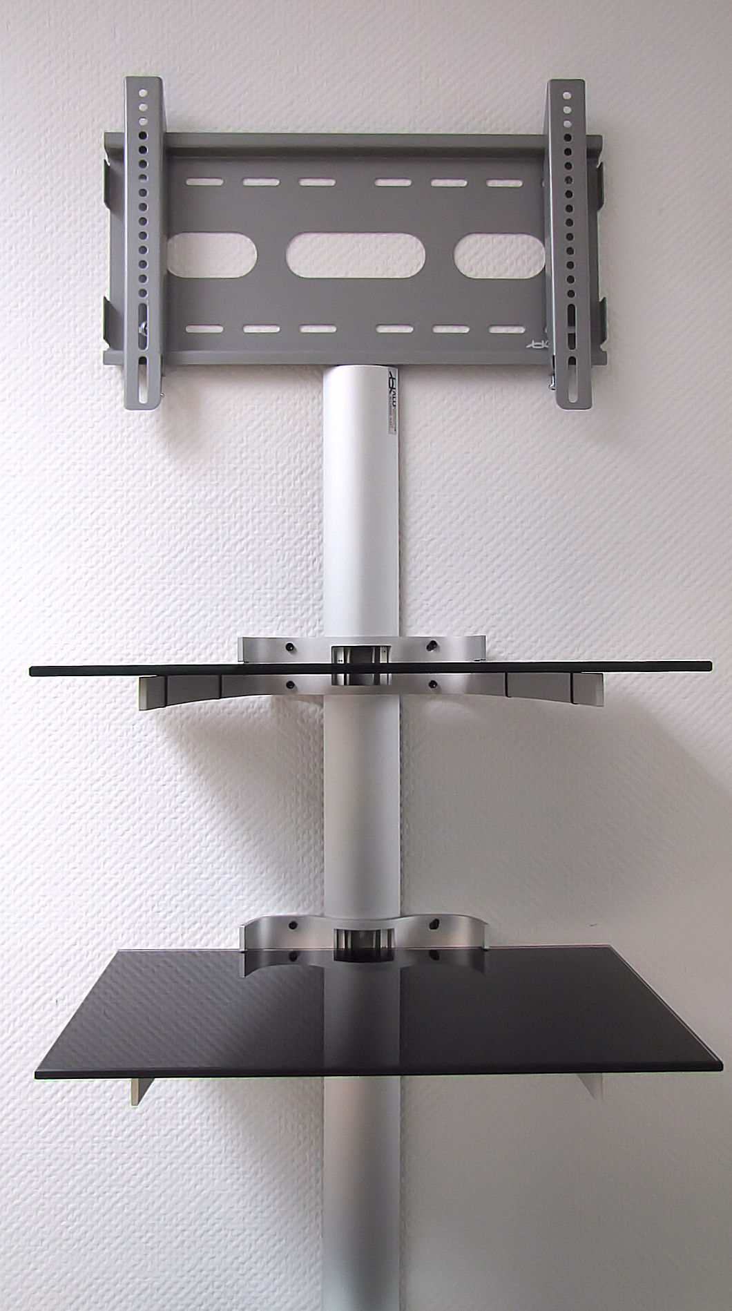 ALUNOVO® Multimediahouder V2 van aluminium, optioneel met glazen plank in verschillende kleuren